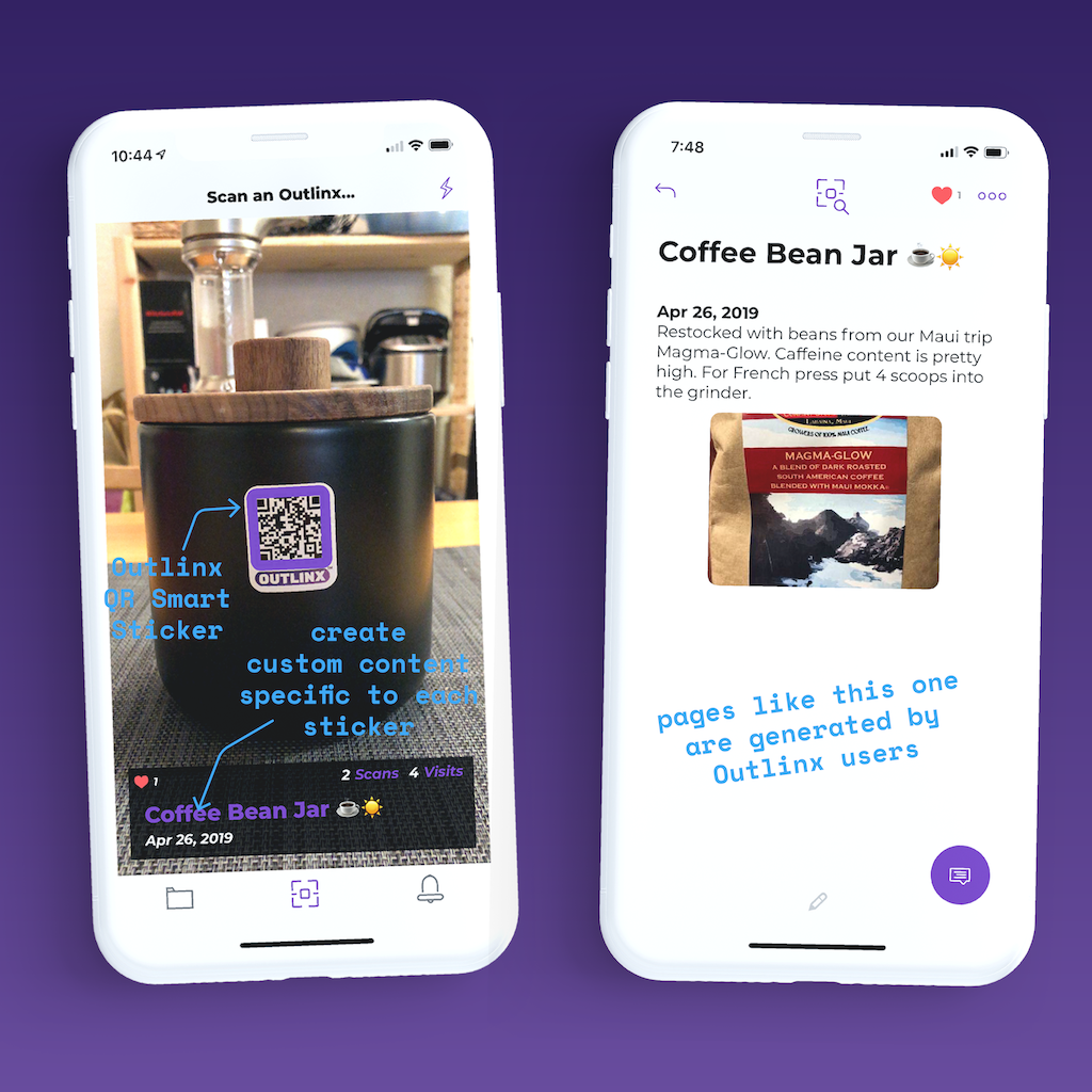 With Outlinx, there’s no news feed or global search function. Other users first have to scan the QR Smart Sticker before they can view the page that’s linked to it.
