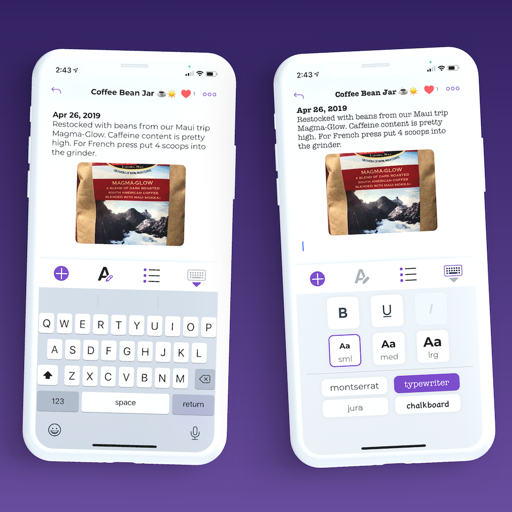 Use the app to update pages with ease. To edit a note page either scan a QR sticker that’s linked to the page, or open the page from the Folders screen. If you see a pencil icon towards the bottom of the note page that indicates you can edit that page. Tap anywhere on the page to open up the keyboard and editing tools. Save your changes and close the page by tapping the back arrow at the top left corner of your screen.