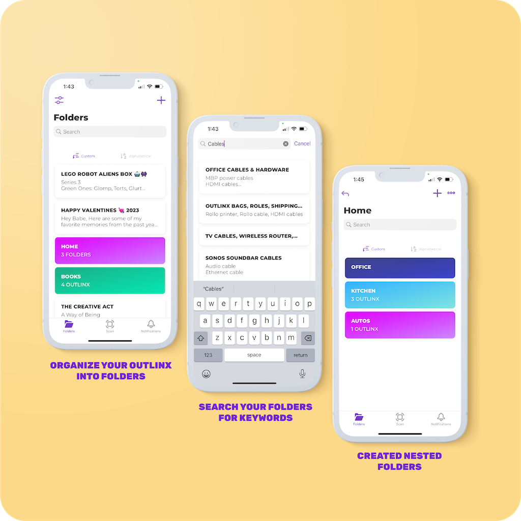 Your pages are automatically saved to Folders so you can access them anytime. Save others' pages as well. Search your Folders to easily find the Outlinx page you're looking for.